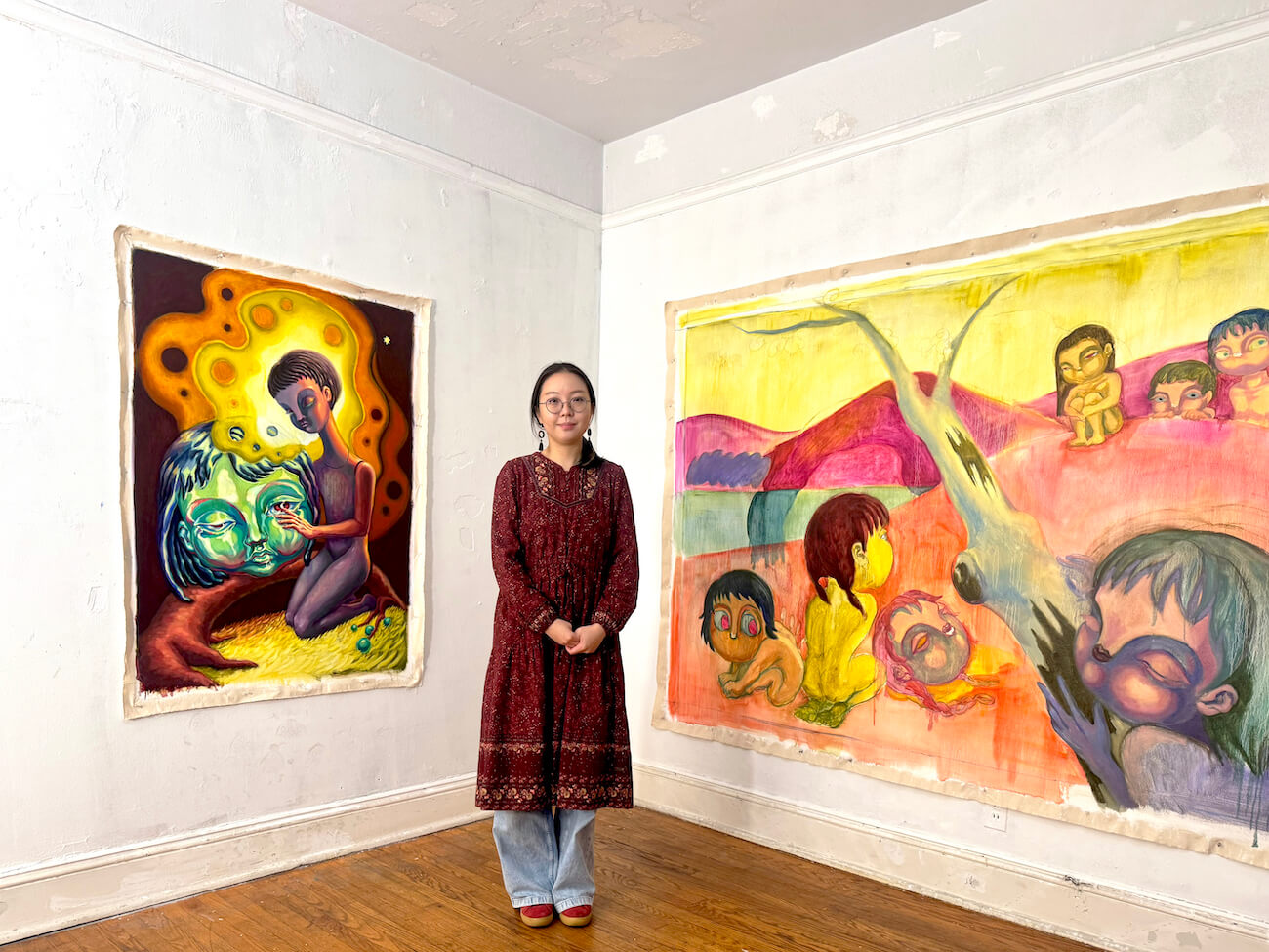 In August 2023, I had my first solo show “Perfect Kidnapping” with the help of ChaShaMa, an art organization that matches artists with local landlords willing to lend spaces when available. The one moment I will never forget is the opening day of that show. It wasn’t in any art district, and it happened only three months after I graduated with my BFA from Pratt Institute. I didn’t really know how to prepare for an opening and was nervous that no one might come. However, many people came one by one, and I still remember them. I’m grateful to have met them and remain in touch. Even after the show, they’ve been the people who supported me whenever I was stuck or needed help with something I couldn’t solve alone.
