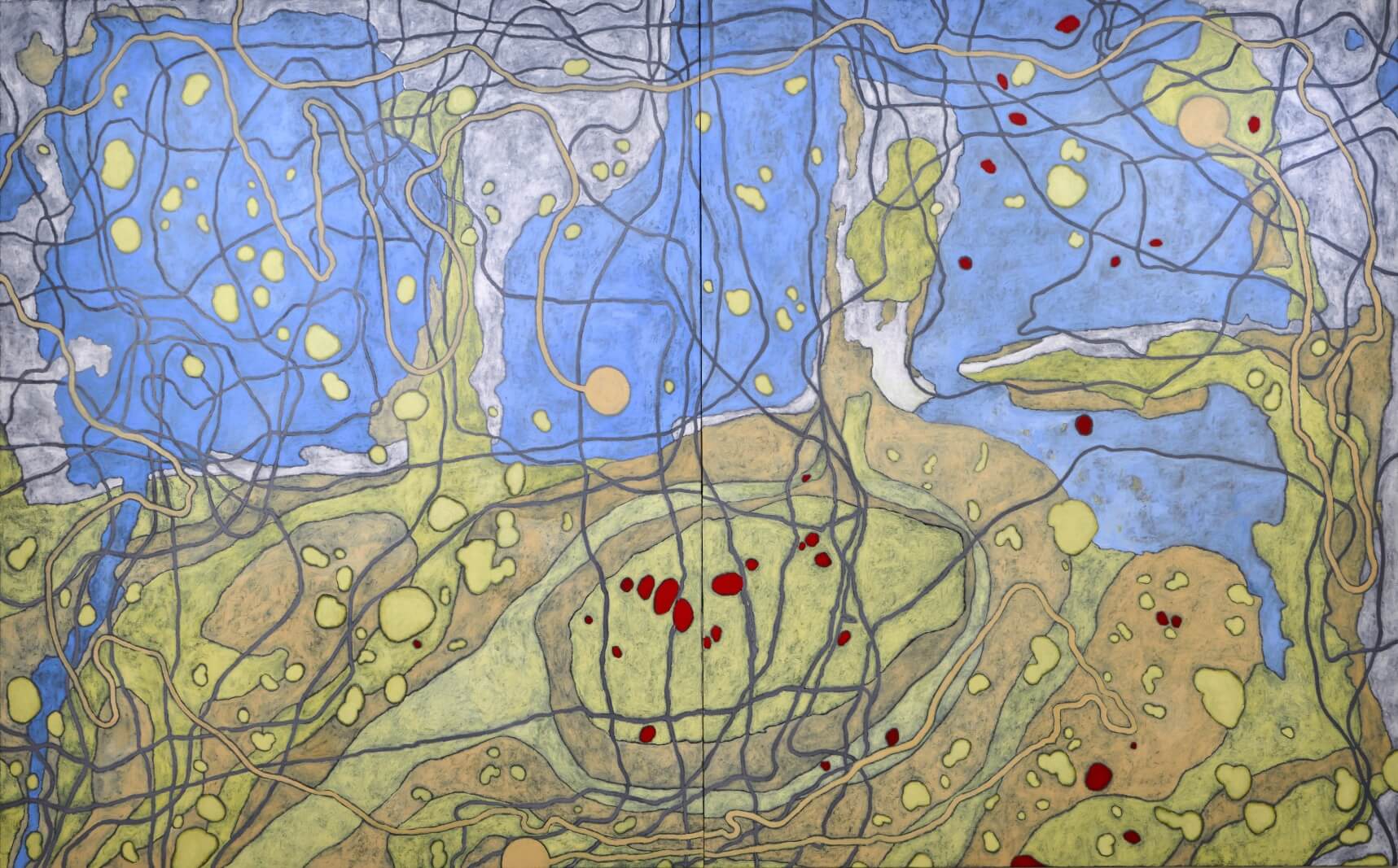 As vivid colors flash through her mind, they quickly form the compositional backbone of each painting. Working with clear gesso, Ah Hyeon allows the natural texture of the canvas to remain visible, creating a tactile interplay between background and pigment. This careful process of layering, covering, and revealing creates a palpable sense of flow. The resulting works seem to echo fragments of urban life and natural landscapes through shifts in tone, form, and movement. As she manipulates these relationships, the canvas gains momentum and depth, shaped by both deliberation and spontaneity.