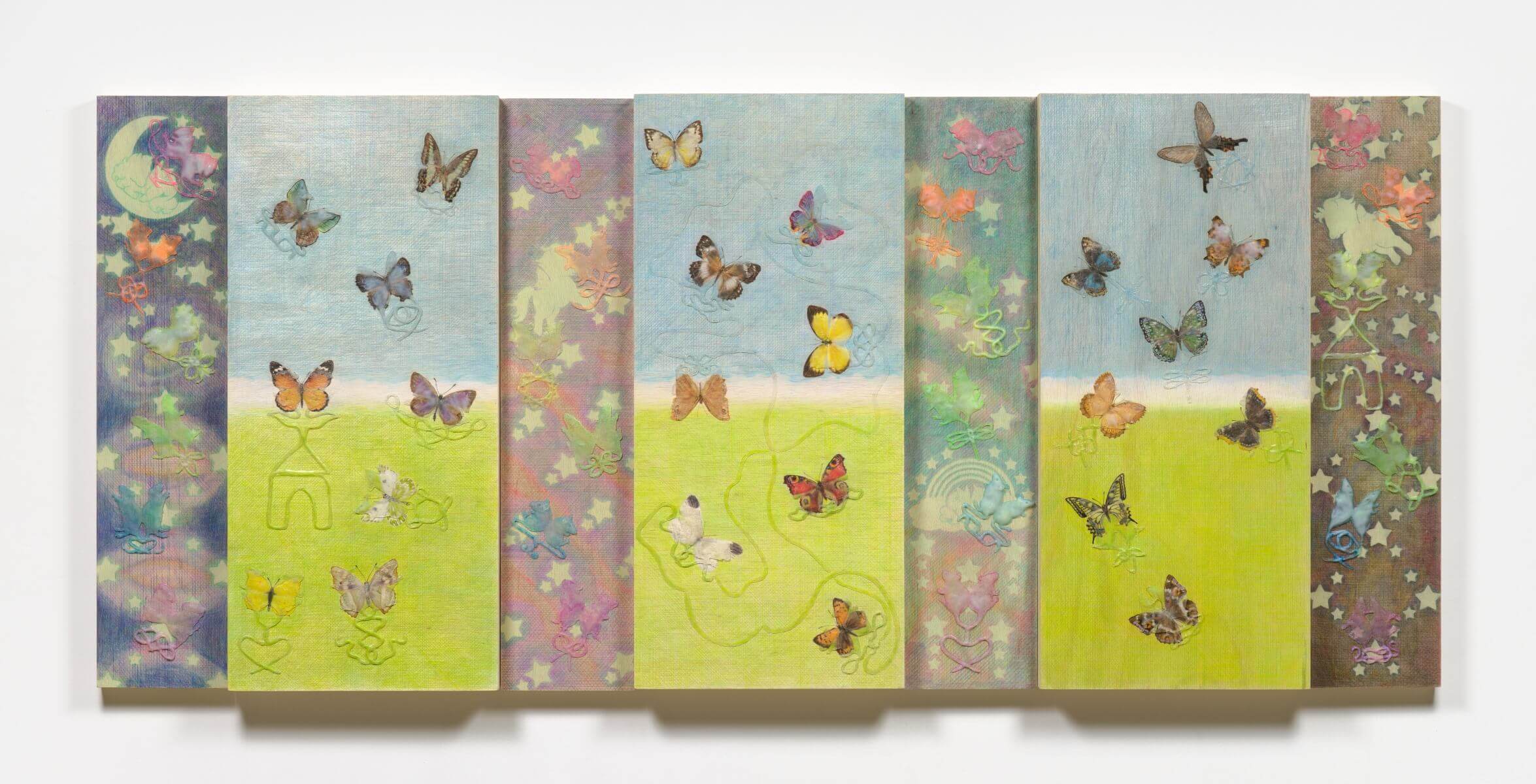 This feeling is distilled in her 4’44” (2023) series, a triptych completed by 4’43” and 4’42”. These sculptural paintings are designed to be felt with the eyes closed, evoking a slow groping through time and grief. From a dead mole found on the street to pets who have crossed the rainbow bridge, Heeji’s imagery was collected over three months in her studio. Indeed, the final works pulse with absence and presence in equal measure, shaped by collective trauma, particularly the COVID-19 pandemic and the Itaewon disaster of 2022. Here, Heeji collects fragments of everyday anxiety, mourning, optimism, and attachment. She fills in the gaps with non-drying, ghostlike sculptures that cling to the canvas like stubborn memories. They express a quiet but persistent ache for contact, for mourning, and for a way out of the traps we cannot see.