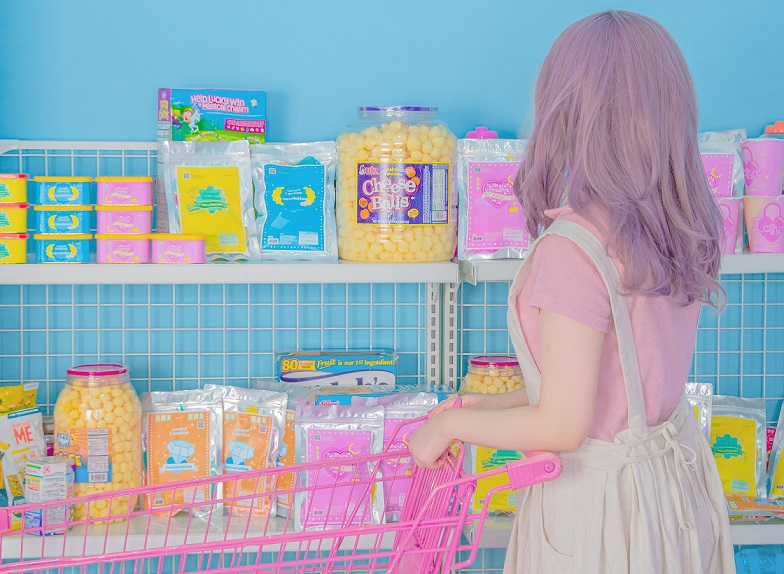 In her Instant Love photographic universe, Enae zones into the fantastical movements of exhausted souls as they break down and re-package human emotions into tactile, edible ingredients and shopping sprees. Instead of embracing the complexity and depending on others for love, they feed on quick emotional fixes and binge until their hearts are far from content. At breaking point, the sweet taste of affection becomes nothing more than an idle craving; a drastic over-fascination with convenience that absolutely comes at a cost.