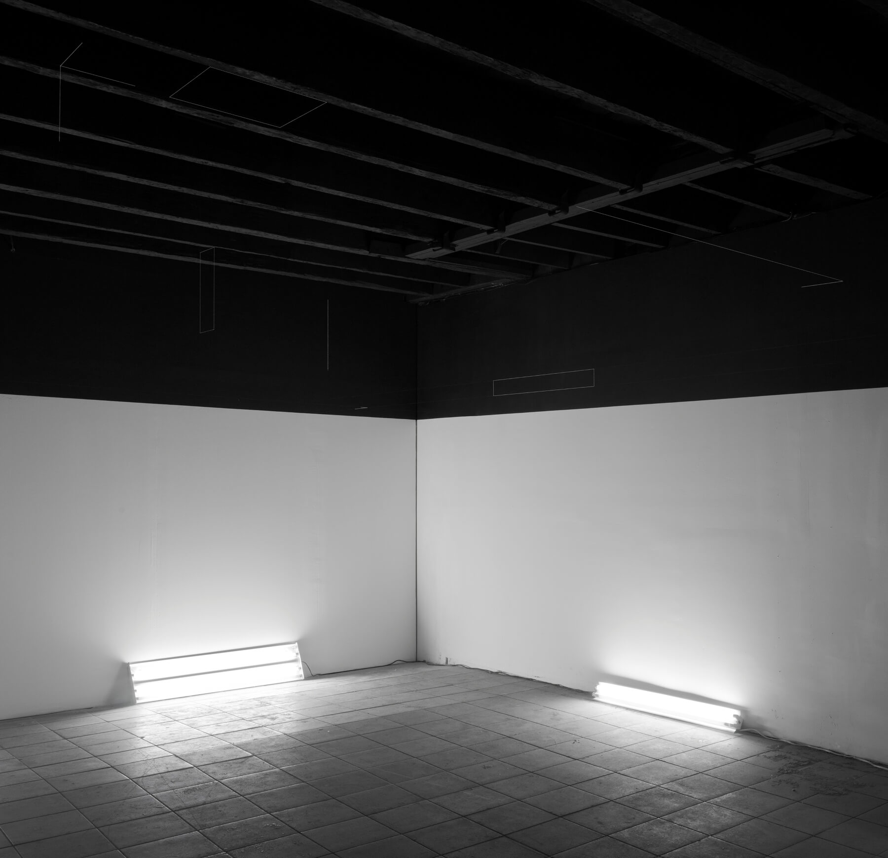 For Jong, the built environment is a source of materiality and inspiration, inseparable from the work itself. Indeed, he manipulates simple materials such as thread, graphite, wood, metal rods, weights, and acrylic sheets into delicately poised compositions that interact with their architectural surroundings. His installations, including those exhibited at ThisWeekendRoom in Seoul, continue to experiment with light and shadow. They invite spectators to reflect upon the limits of perception as well as the spatial and temporal complexity that, in unison, constitute a unique and nuanced understanding of the world around them.