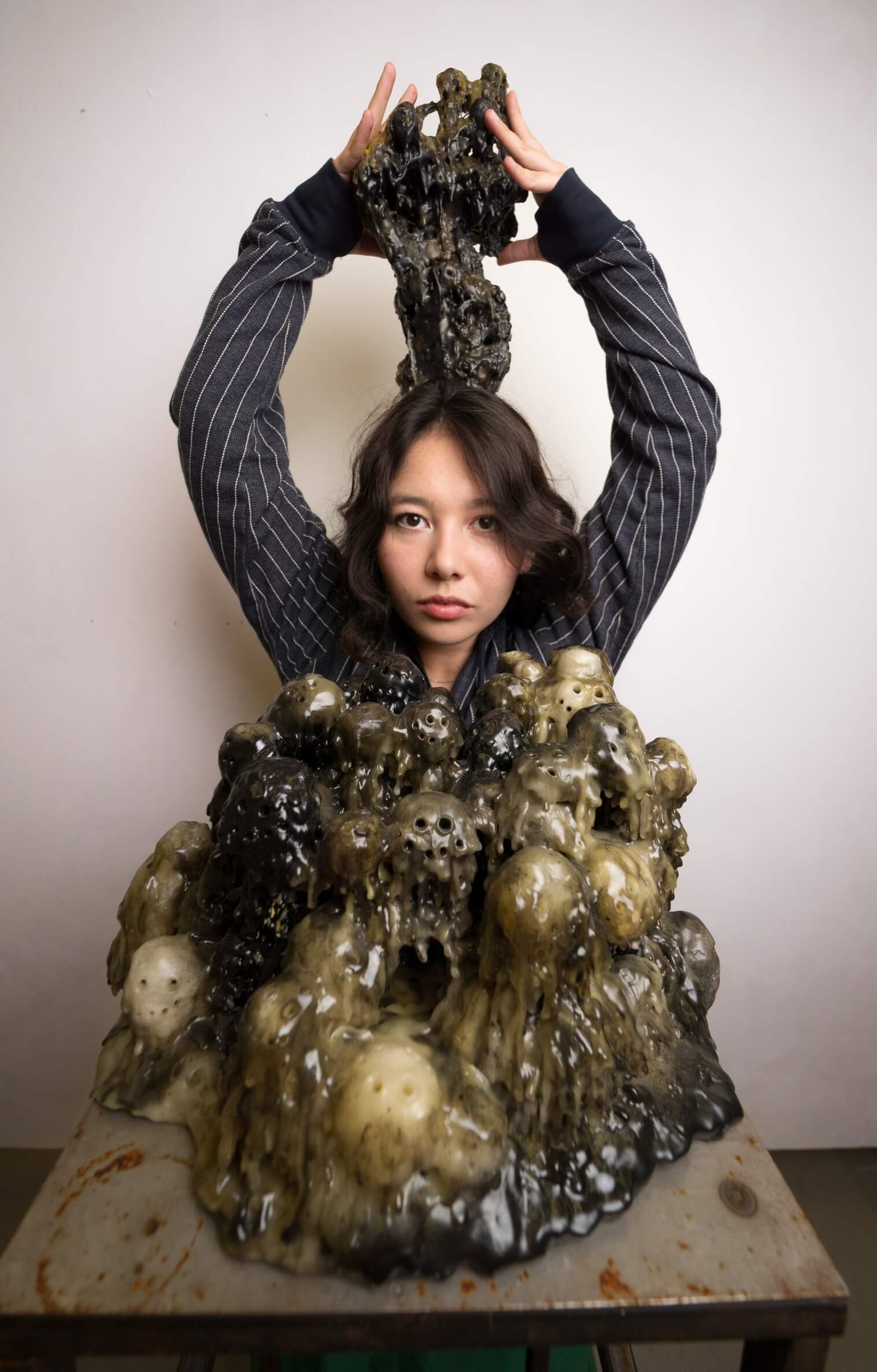 A similar sensitivity to process appears in her wax works, where gravity becomes an active collaborator. As the wax drips and settles of its own volition, it forms shapes that subvert the strictures of planning. This method aligns with Daria’s interest in Central Asian spiritual traditions, where manifestation is often understood as fluid and indeterminate. Even after solidifying, the material retains the impression of movement, as though the form could pivot once more at any moment.